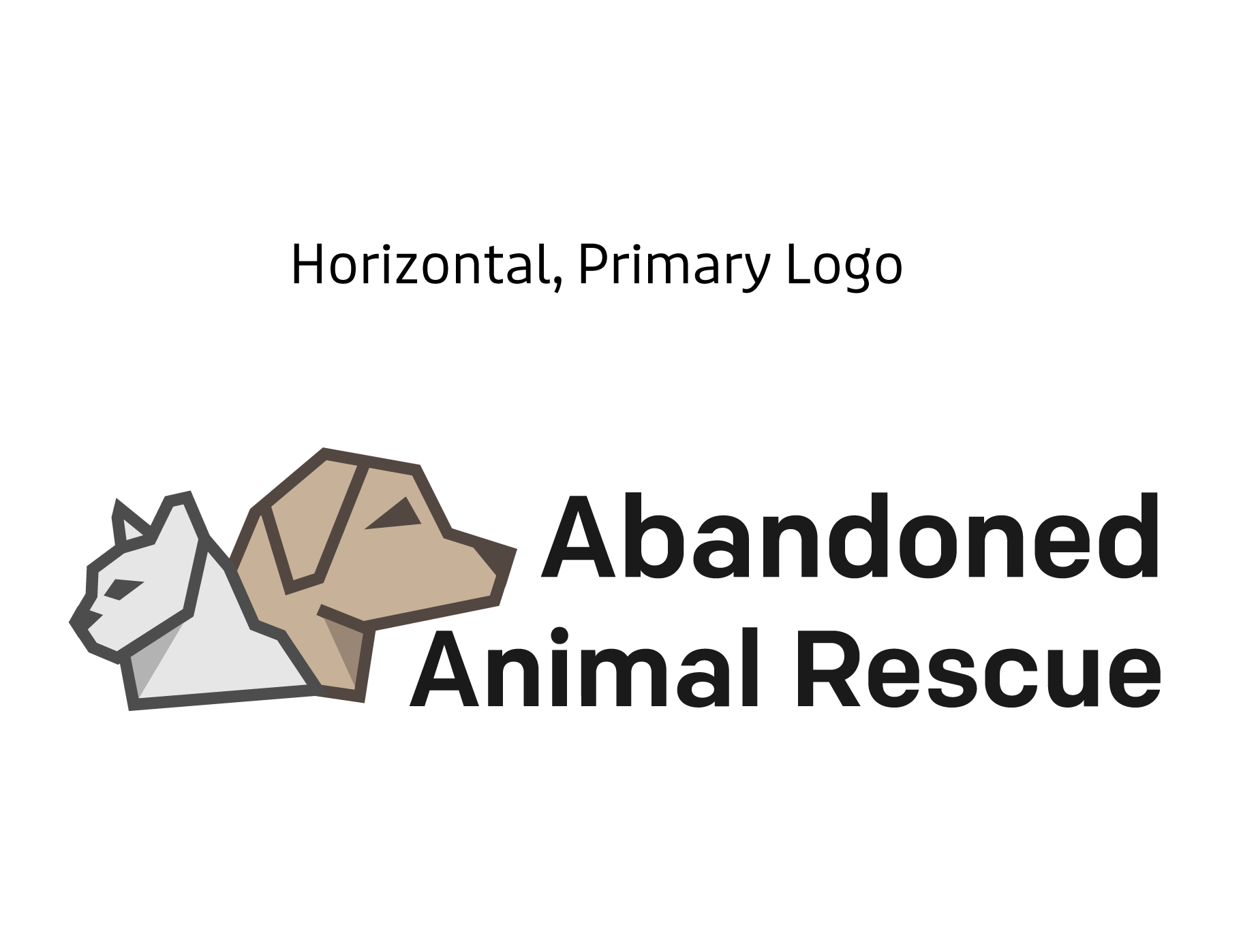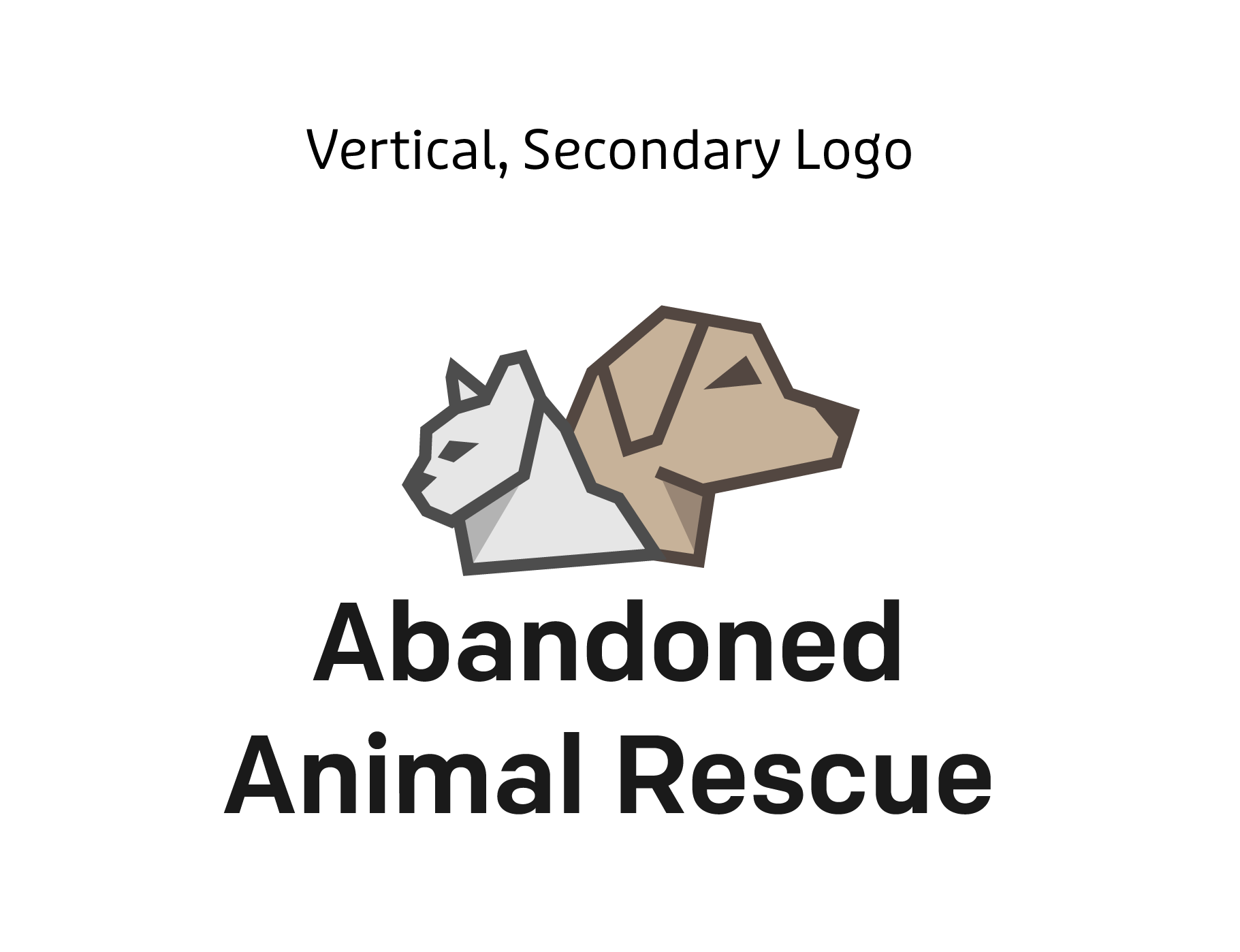 The logo icon was created using geometric heavy lines, intended to bring attention to the brand. This includeds both a dog and cat to address the animals that are treated and available for adoption at the Abandoned Animal Rescue. Combining a design that is recognizable to most people and the geometric lines keeps the design unique. The primary logo lockup has the logo icon closer to the type to integrate the two elements while also providing balance to the overall design. The secondary logo design stacks to allow for additional usage in smaller formats while still providing some balance.